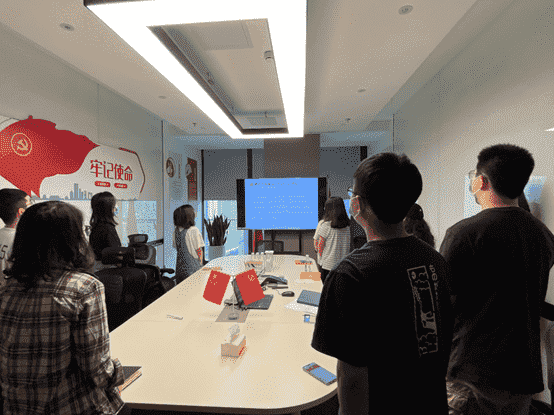 而后,,,,全体党员一起重新学习了解了目前的入党流程要求,,各支部也将在后续工作中进一步发挥支部职能,,做好发展党员工作。。最后,,,,全体党员面向党旗,,,,重温入党誓词。。。。